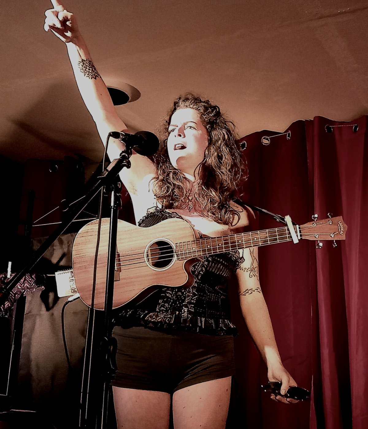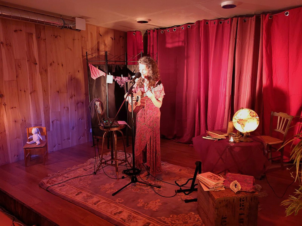 En mots teintés d'humour, en chansons teintées d'amour, le ukulélé comme fidèle conteur de notes, elle invite, le temps d’une heure, à observer au travers de ses yeux l’odyssée qu’est l’existence sur la planète Terre.